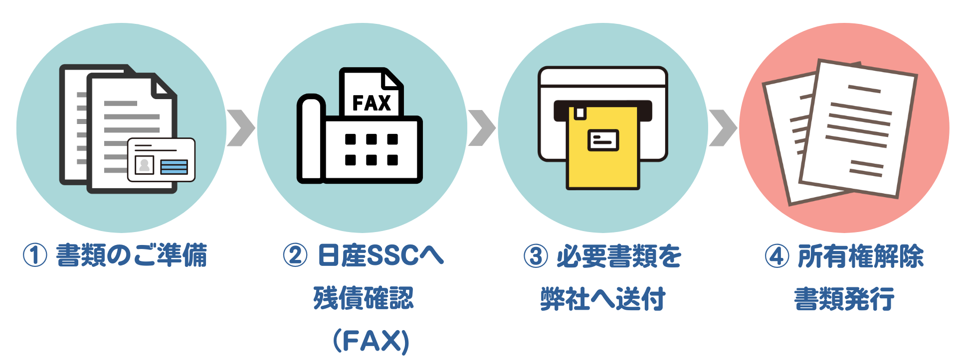 1.残債調査照会 兼 所有権解除承諾書・車検証・本人確認書類をFAX。